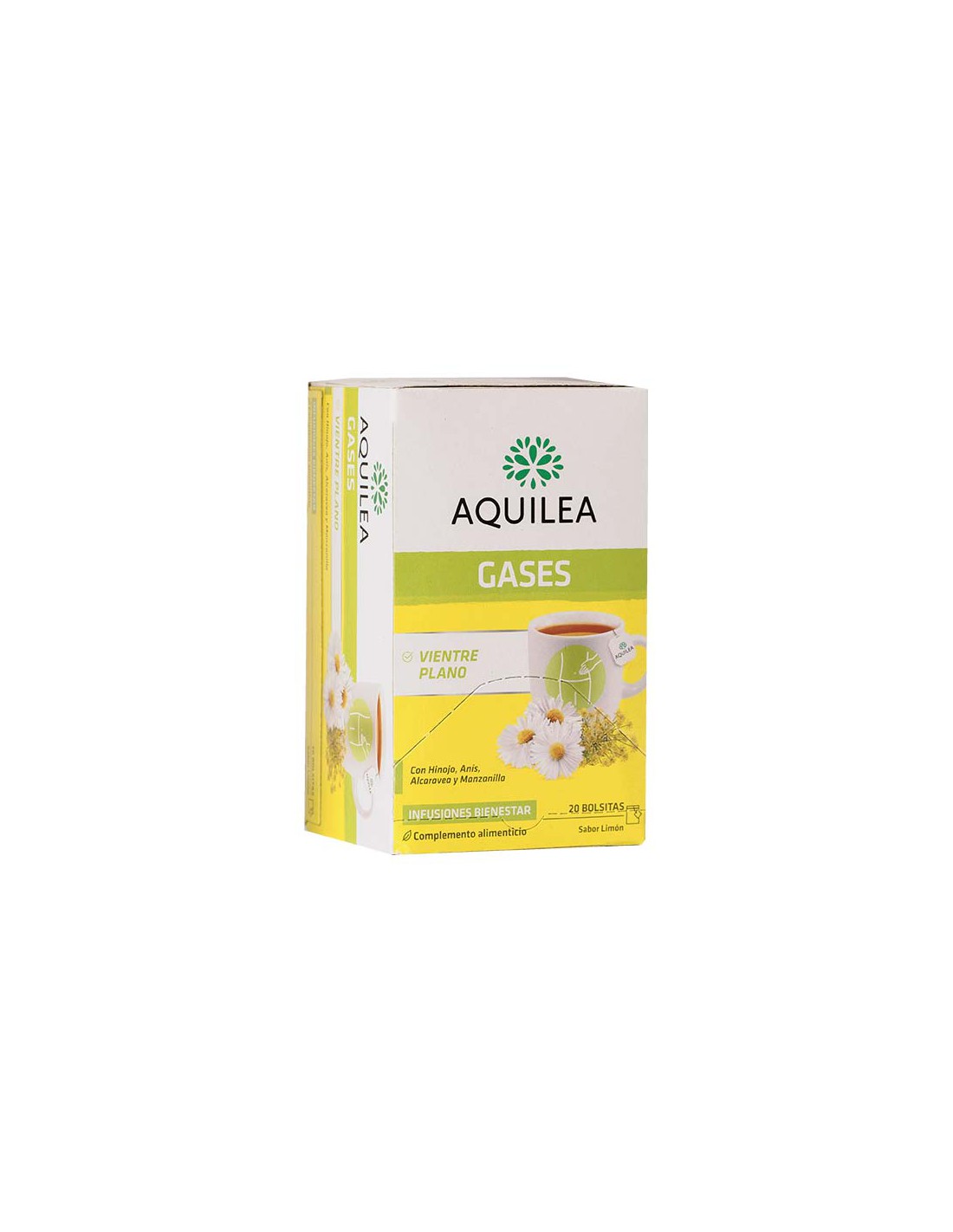 Complemento alimenticio a base de hinojo, anís, hierba Luisa, alcaravea y manzanilla, que puede contribuir a reducir hinchazón provocado por los gases, proporcionando una sensación de bienestar y vientre plano.