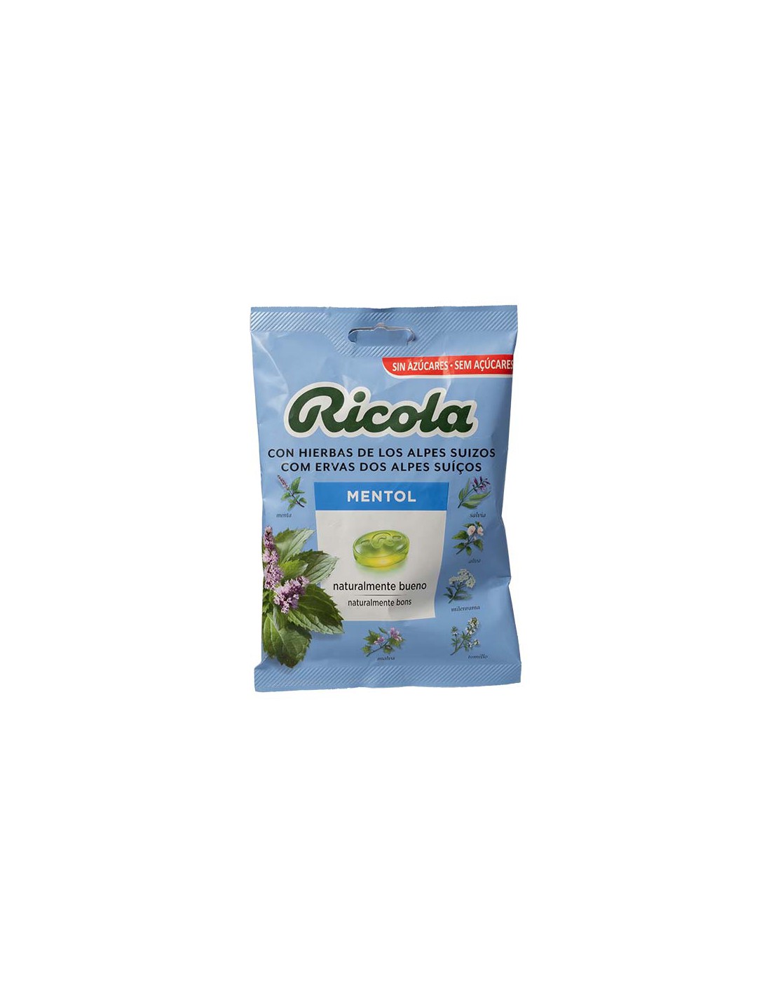 Caramelos de hierbas suizas sabor mentol, sin azúcares. Efecto agradable y refrescante.