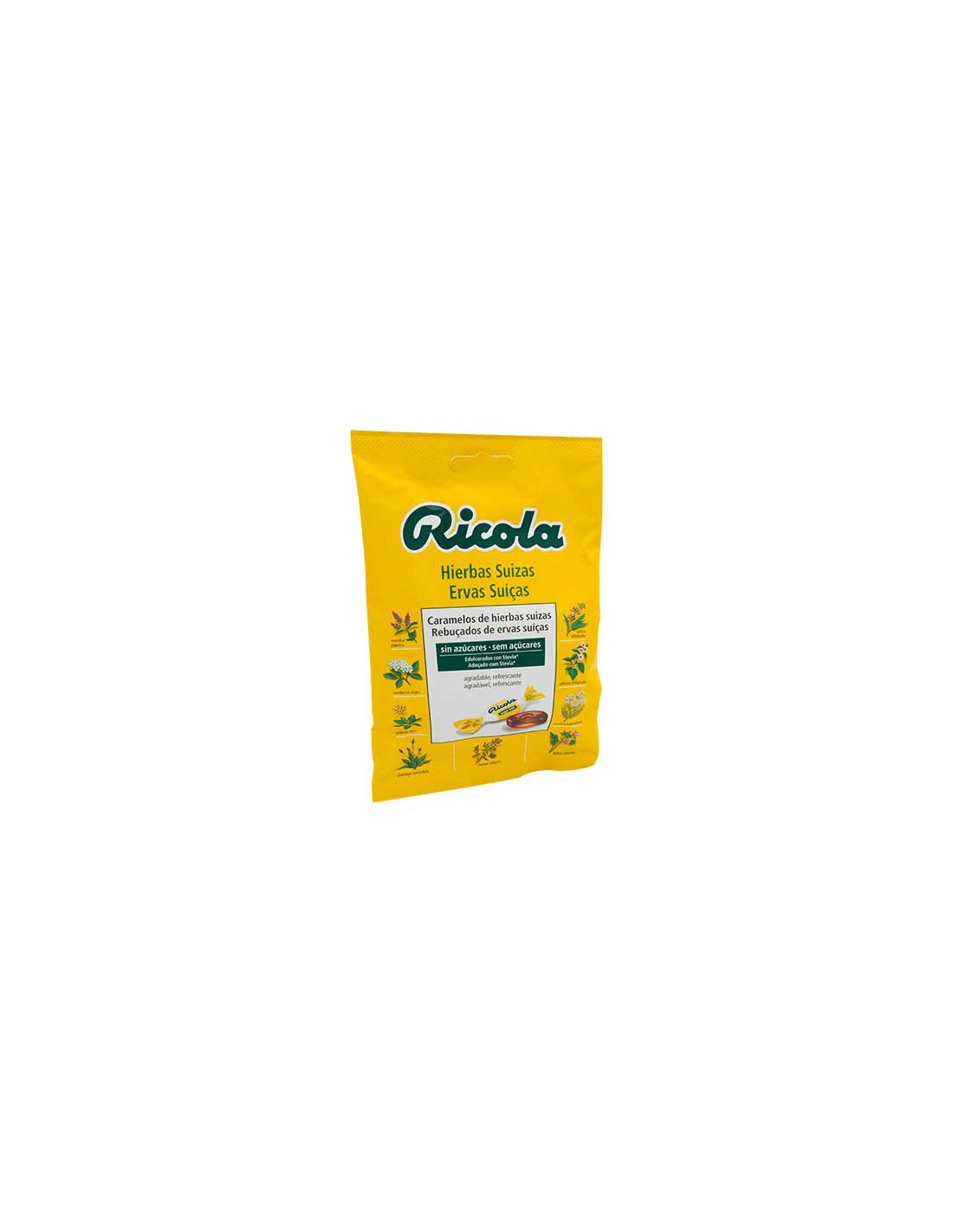 Caramelos de Hierbas Suizas sin azúcares, edulcorados con stevia. Agradables y refrescantes.