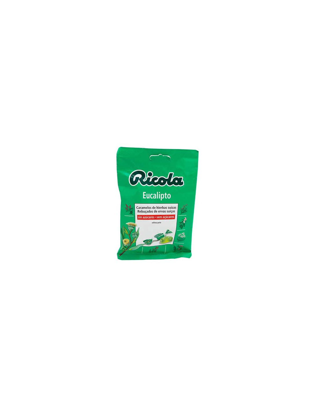 Caramelos de hierbas suizas sabor eucalipto, sin azúcares. Efecto refrescante.